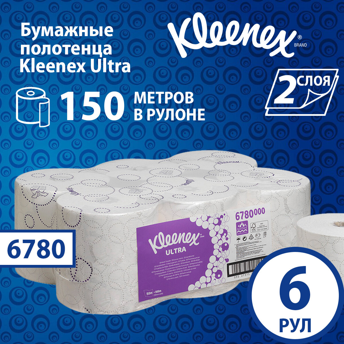 Бумажные полотенца Kleenex Ultra, 2 слоя (6 рул х 150 м), 6780 информация: