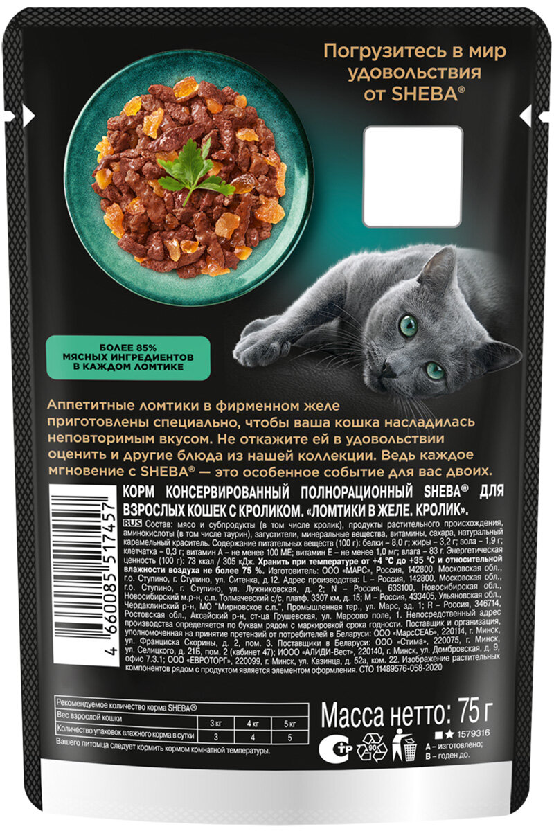 SHEBA для взрослых кошек ломтики в желе с кроликом пауч 75 гр х 5 шт информация: