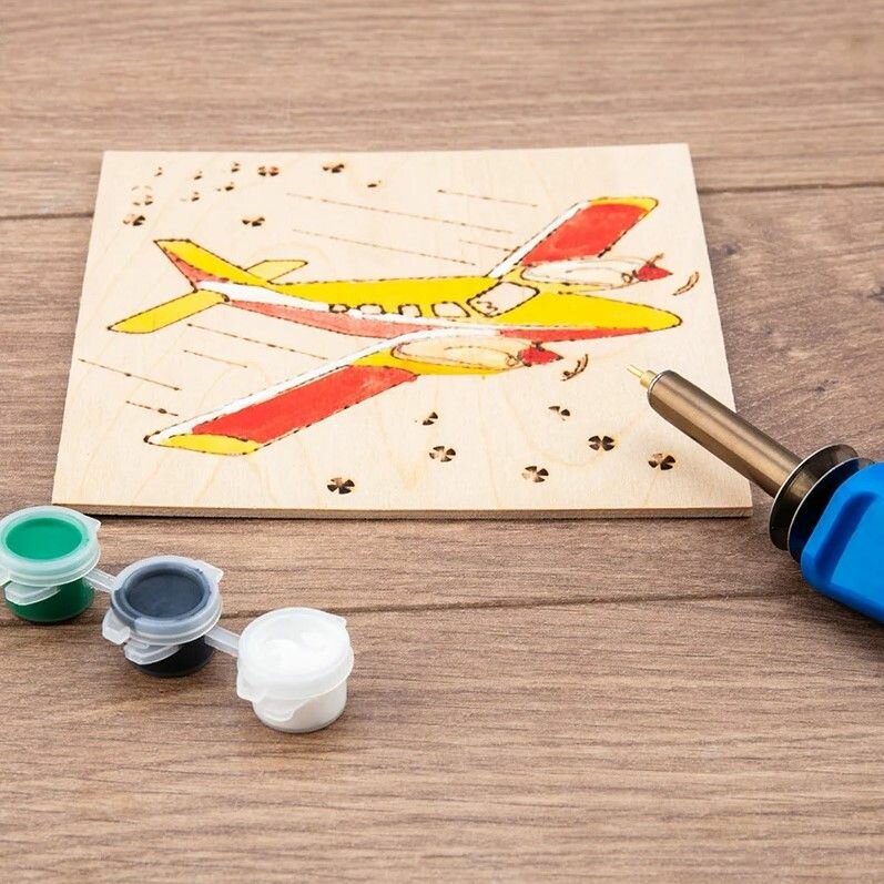 10 цен на Набор: паяльник-выжигатель, 6 насадок + краски 220В 30Вт REXANT