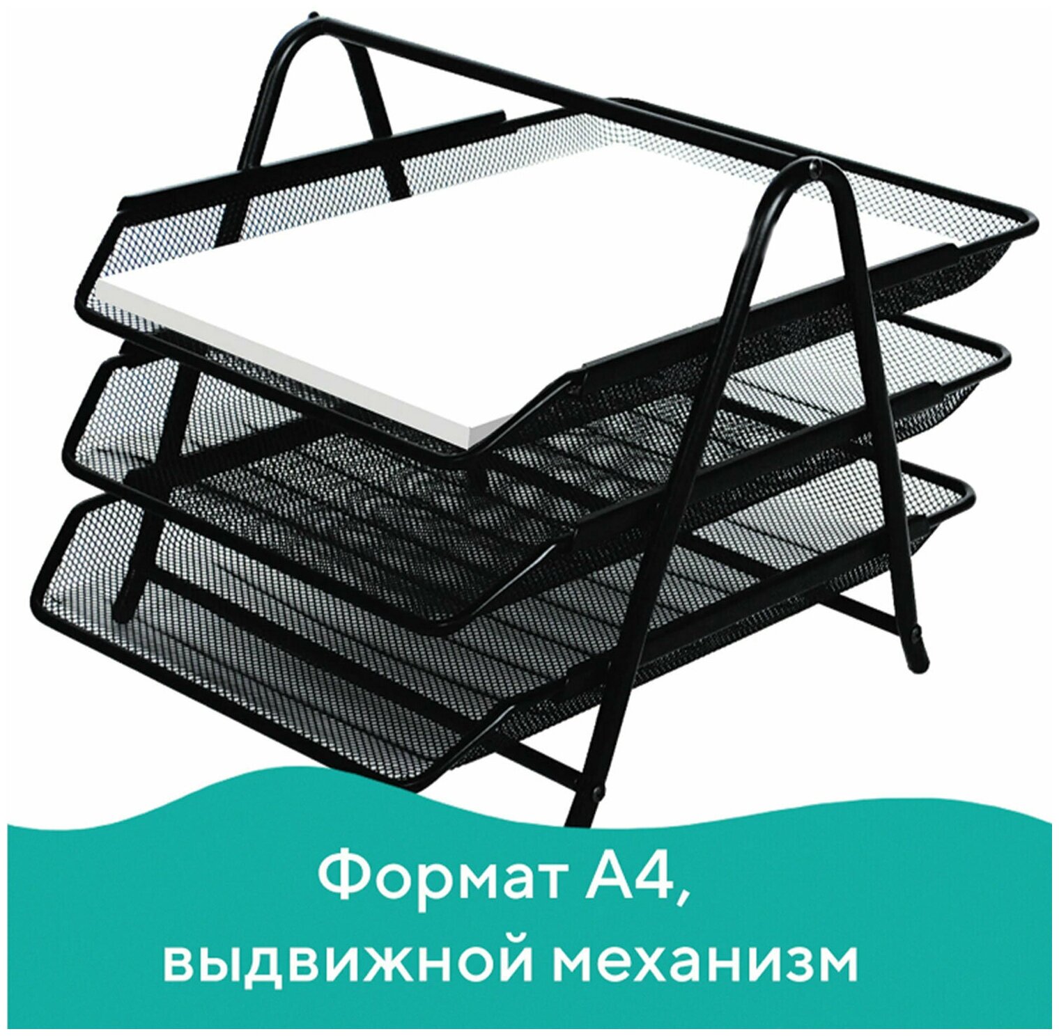 Лоток для бумаг горизонтальный, 3 отделения BRAUBERG Germanium, металлическая сетка, чёрный