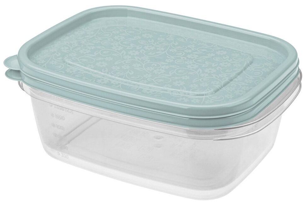Контейнер для продуктов Бытпласт пластмассовый "Арт-декор" 1,25 л, 21х16х9 см, набор 2 шт, светло-голубой, можно использовать в свч (431154331)