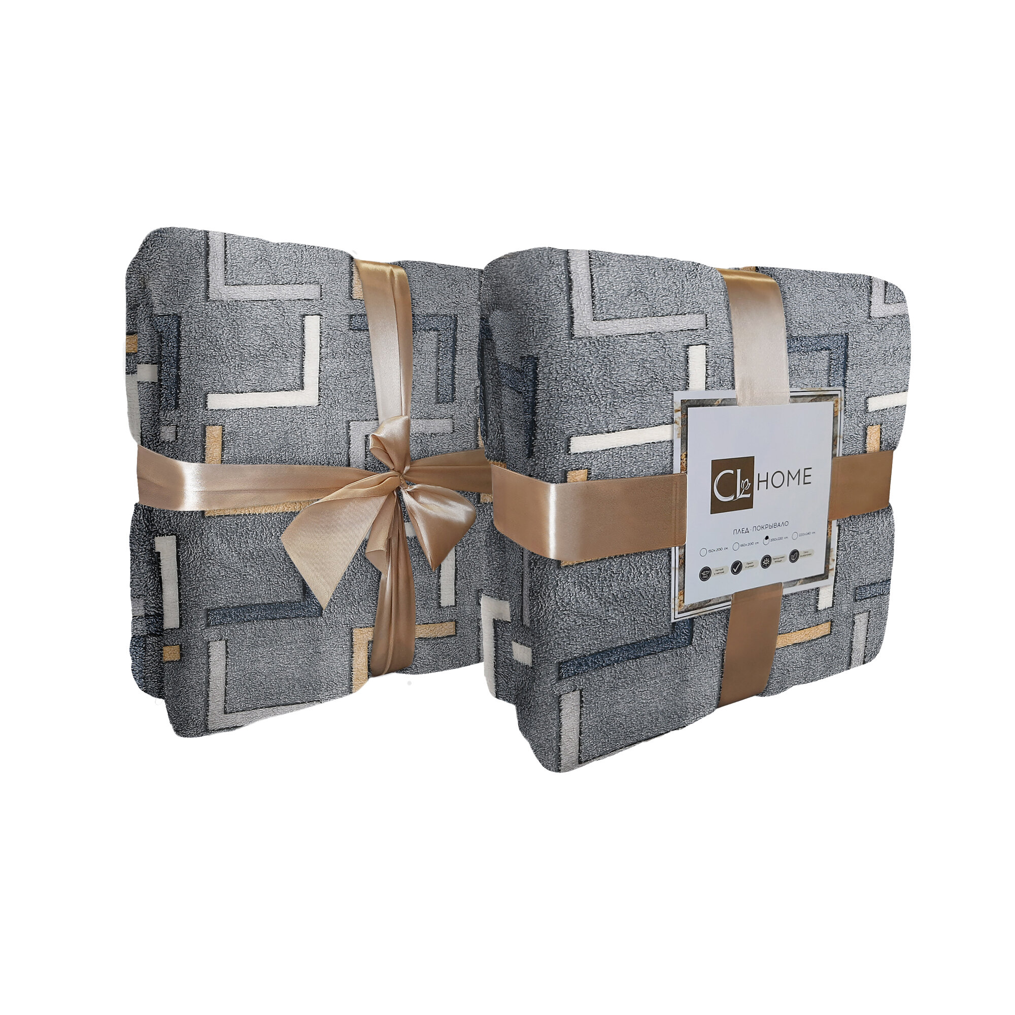 Плед из велсофта Калифорния 191-pf Cleo (кремовый-серый), 200x220 2 100 ₽