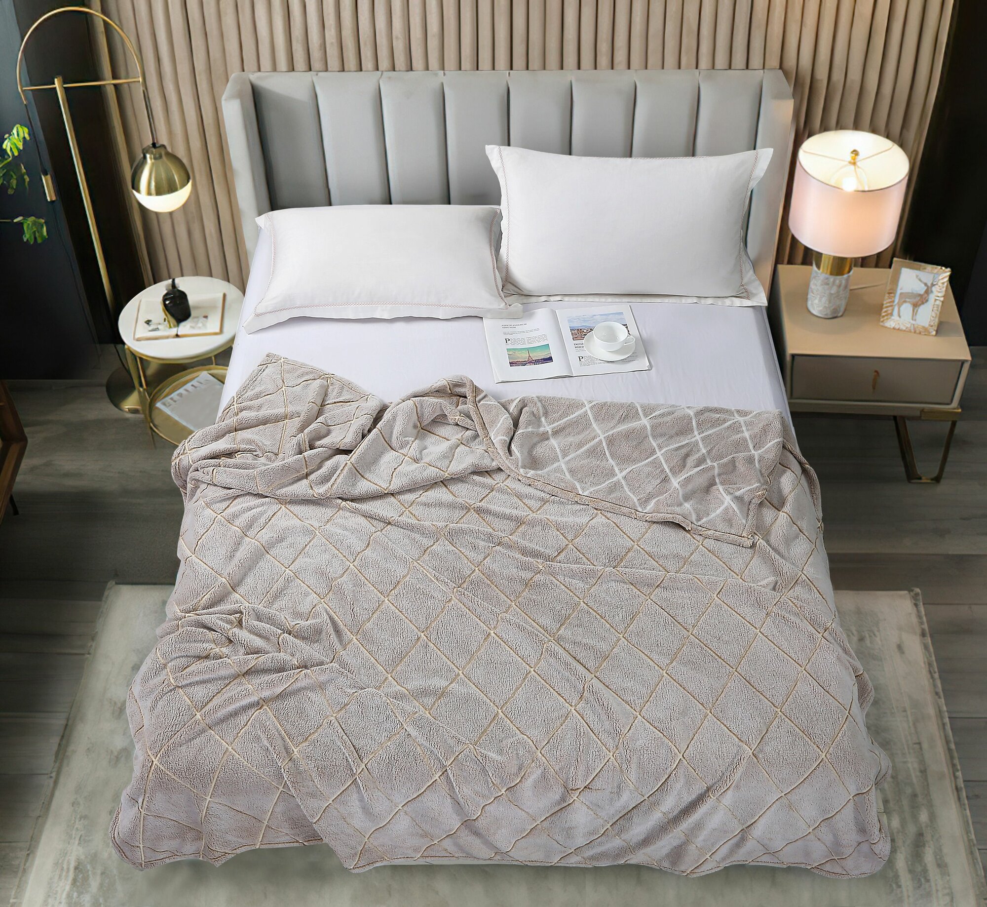 Плед из велсофта Калифорния 191-pf Cleo (кремовый-серый), 200x220 2 100 ₽