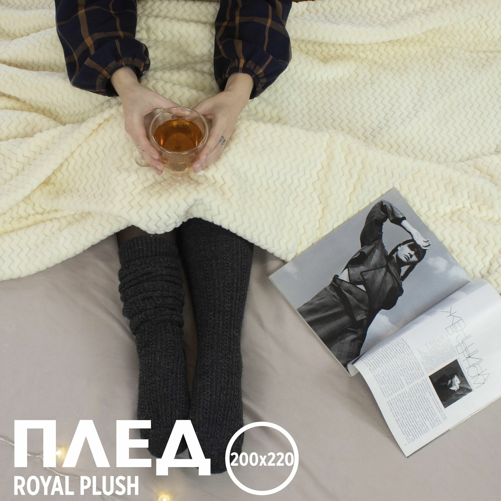 Плед двуспальный евро 200х220 однотонный кремовый, покрывало на кровать и диван Cleo Royal Plush, пушистый, флисовый, велсофт