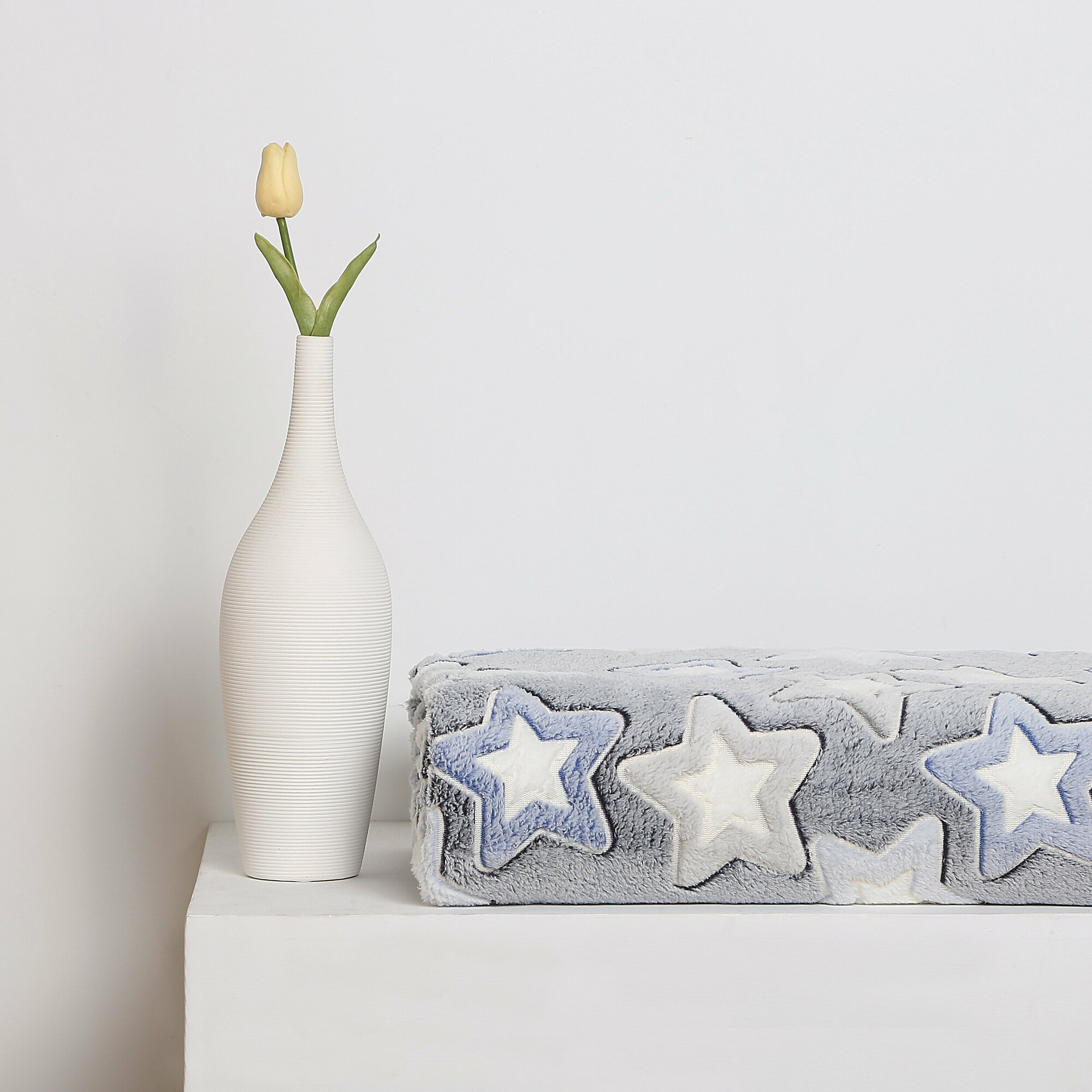 Плед светящийся в темноте 150х200 Cleo Бамбук Неон однотонный серый, покрывало на кровать и диван, пушистый с рисунком, флисовый, велсофт 1 724 ₽