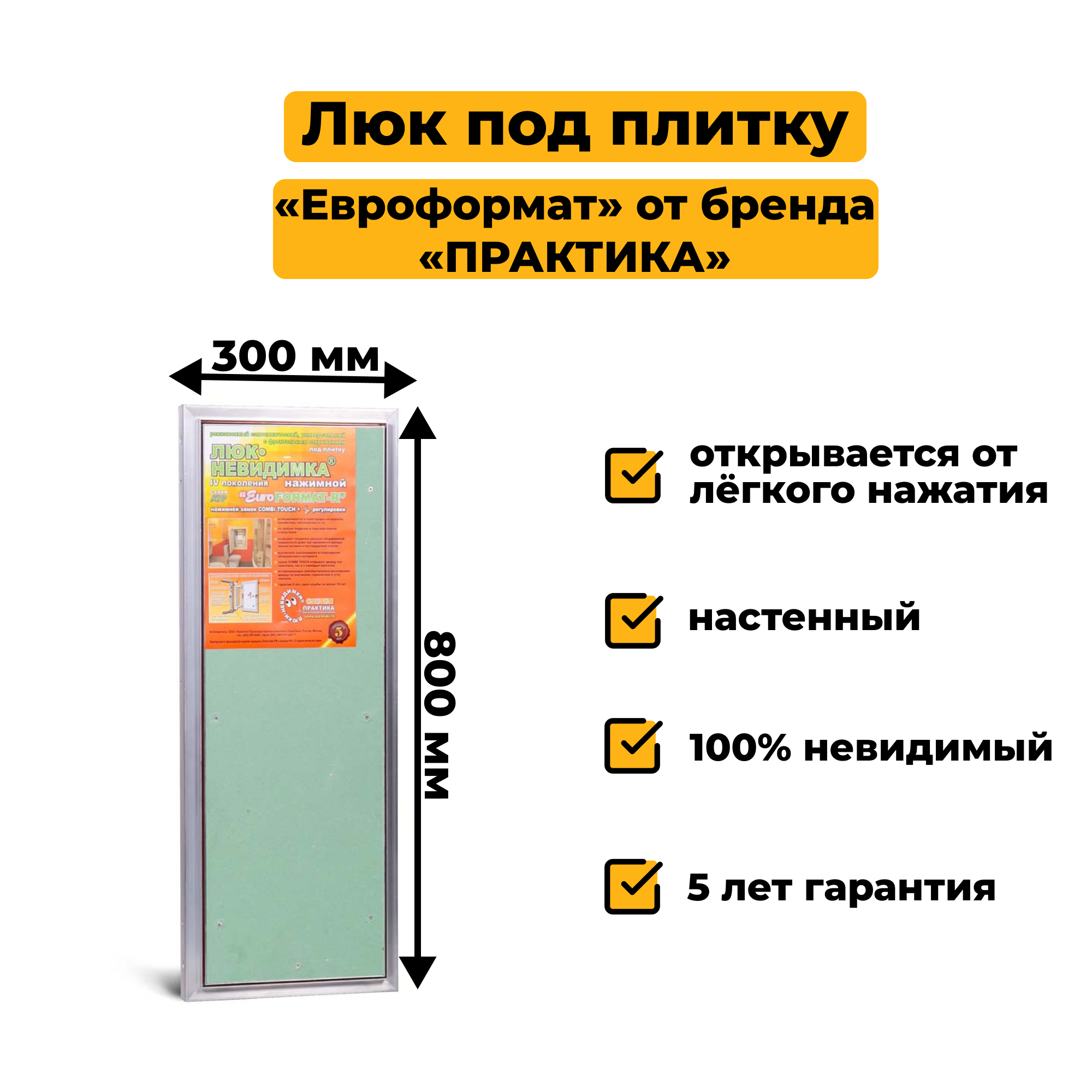 Скрытый ревизионный люк 30х70 (ШхВ) под плитку «Евроформат» Практика, нажимной, распашной