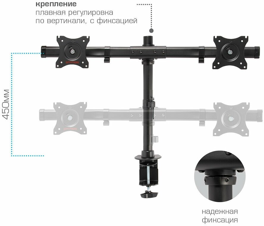 Кронштейн настольный Arm Media LCD-T42 Arm Media 10165 на 2 монитора, 15-32" макс. 20кг, поворот и наклон верт.перемещ, черный
