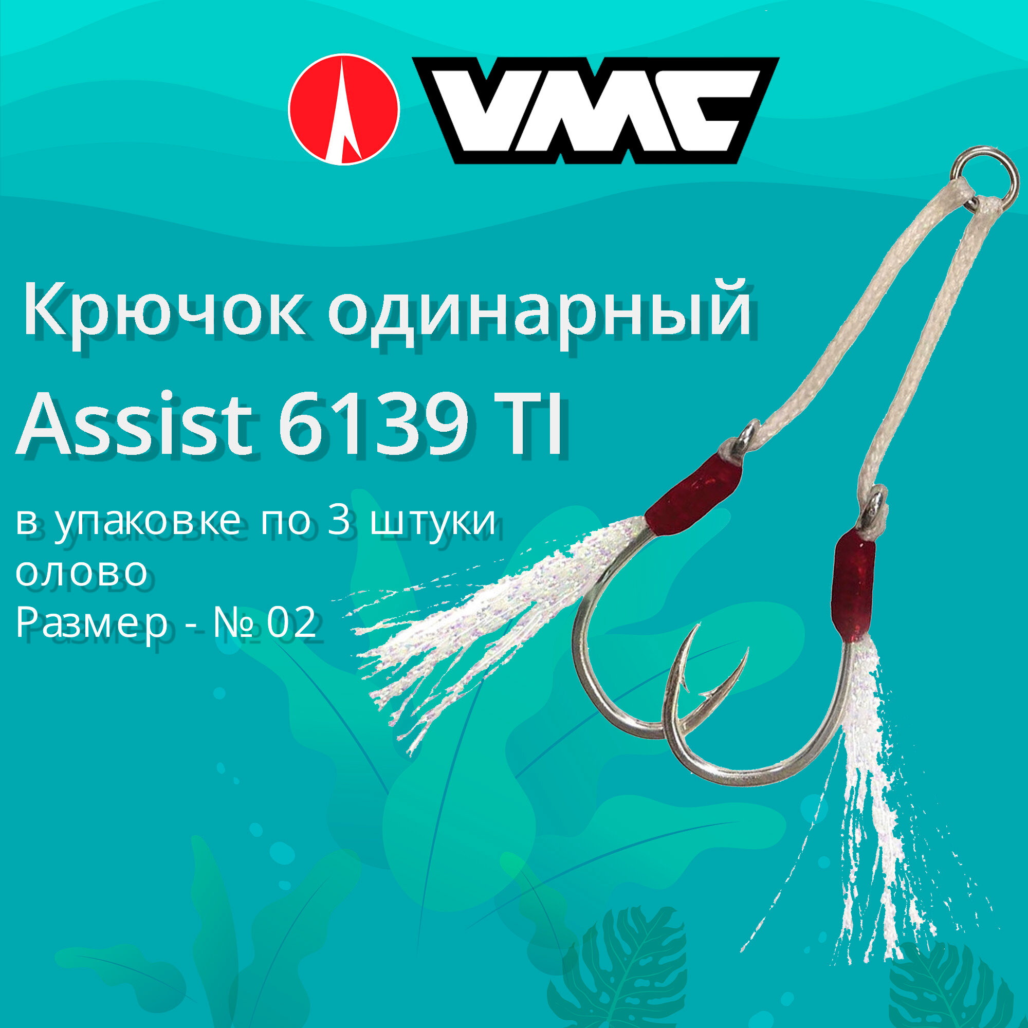 Крючок одинарный рыболовный VMC Assist 6139 TI (олово), №02, 3 пары информация: