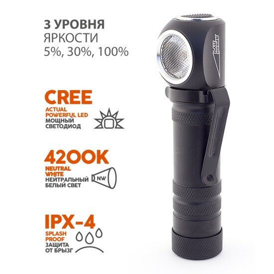 Яркий ЛУЧ Фонарь LH-500 "enot" налобный/ручной Cree XP-G3 500лм, 3реж., клипса/магнит, под акк 18650