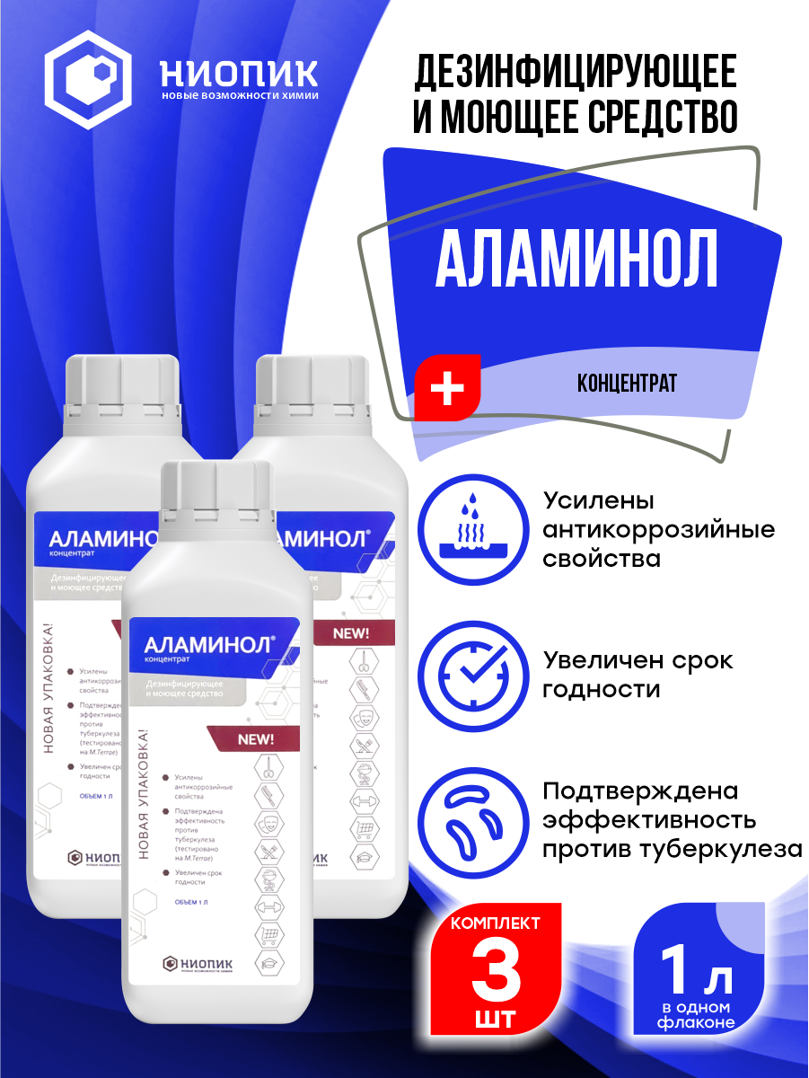 Дезинфицирующее средство ниопик Аламинол концентрат, 1000 мл - 3 штуки информация: