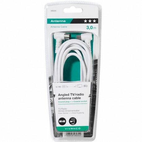 Отзывы на Антенный кабель в белом цвете с угловыми разъемами длиной 3 м Vivanco 48034