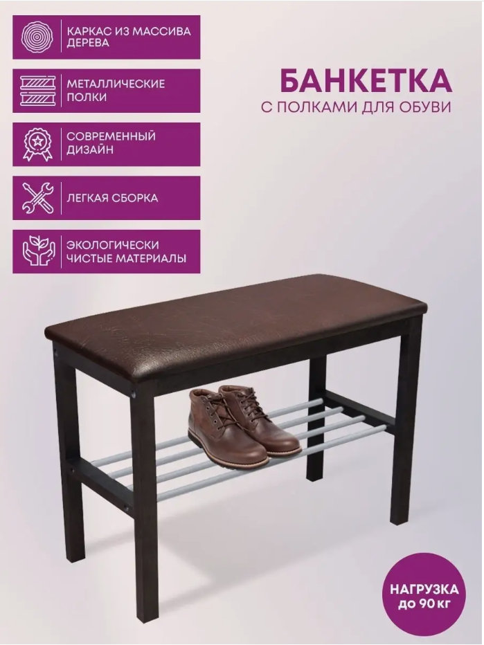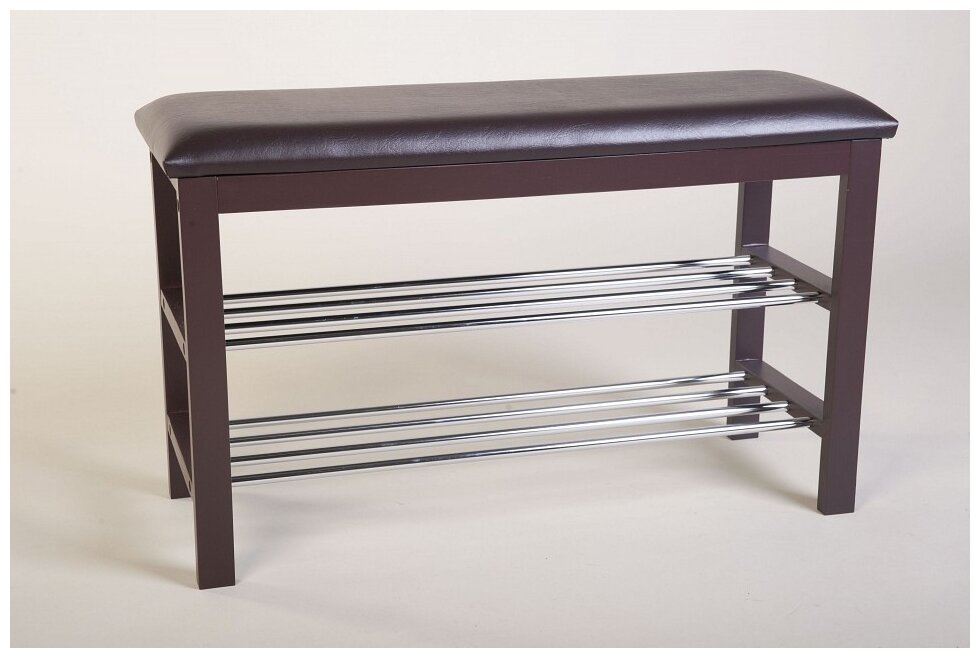 Банкетка-полка для обуви Sheffilton SR-0628, 760*310*490мм, 2 полки, дерево темно-коричневый орех, металл хром, кожзам темно-коричневый, Б-2 5 663 ₽