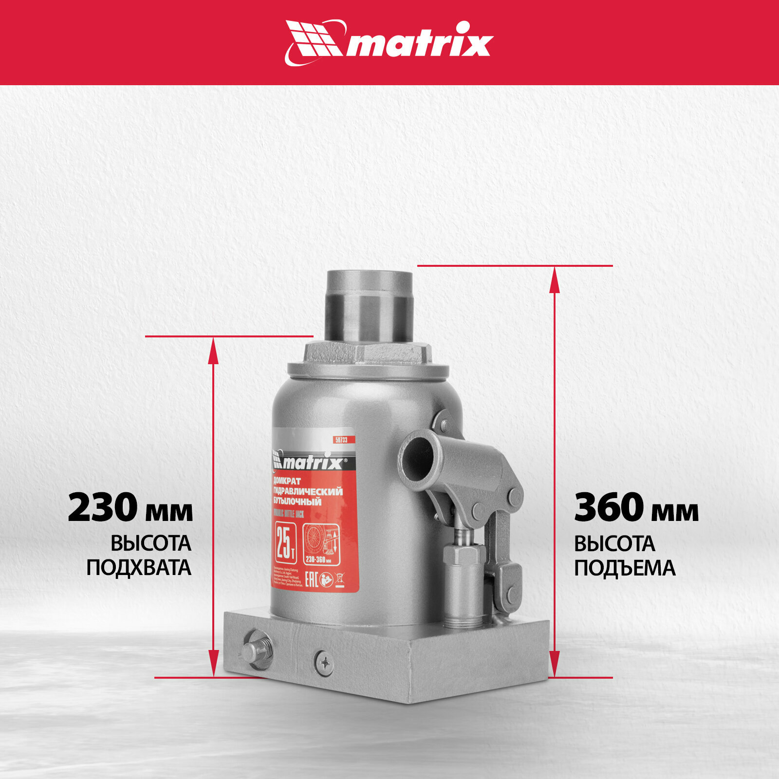 Домкрат гидравлический бутылочный, 25 т, высота подъема 230-360 мм Matrix 11 340 ₽