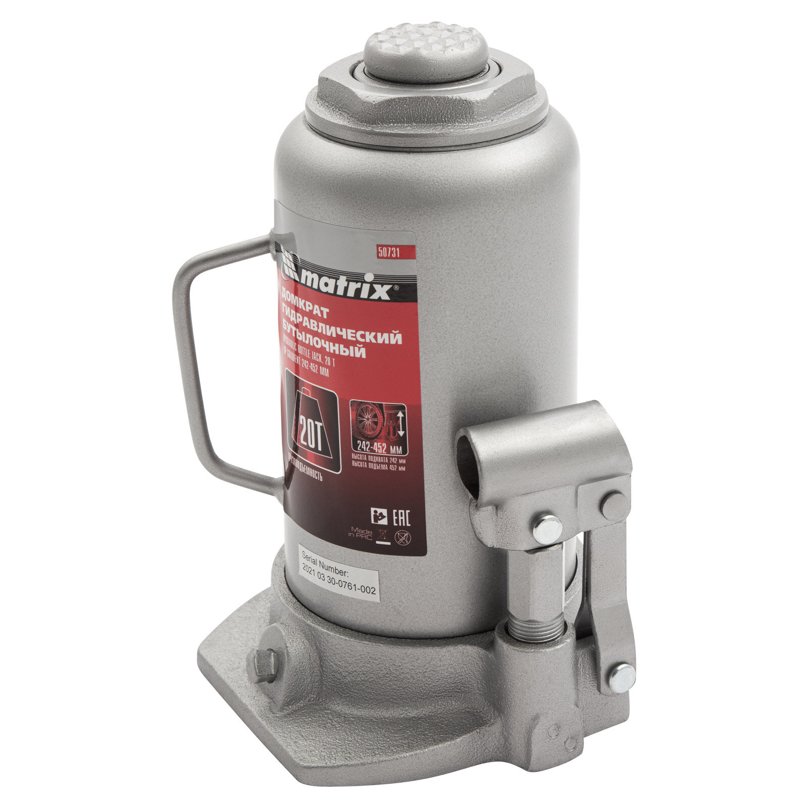 50731_Домкрат! Гидравлический Бутылочный, 20Т, H Подъема 242-452Мм Matrix арт. 50731