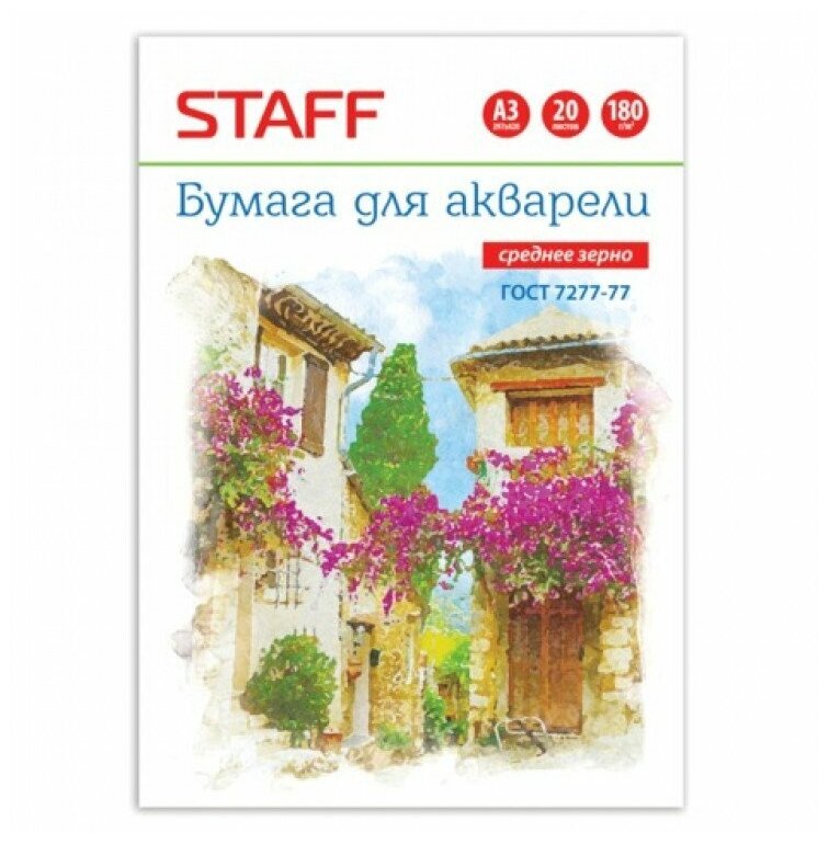 10 цен на Бумага для акварели Staff А3 29,7х42 см, 20 листов, в папке (126964)