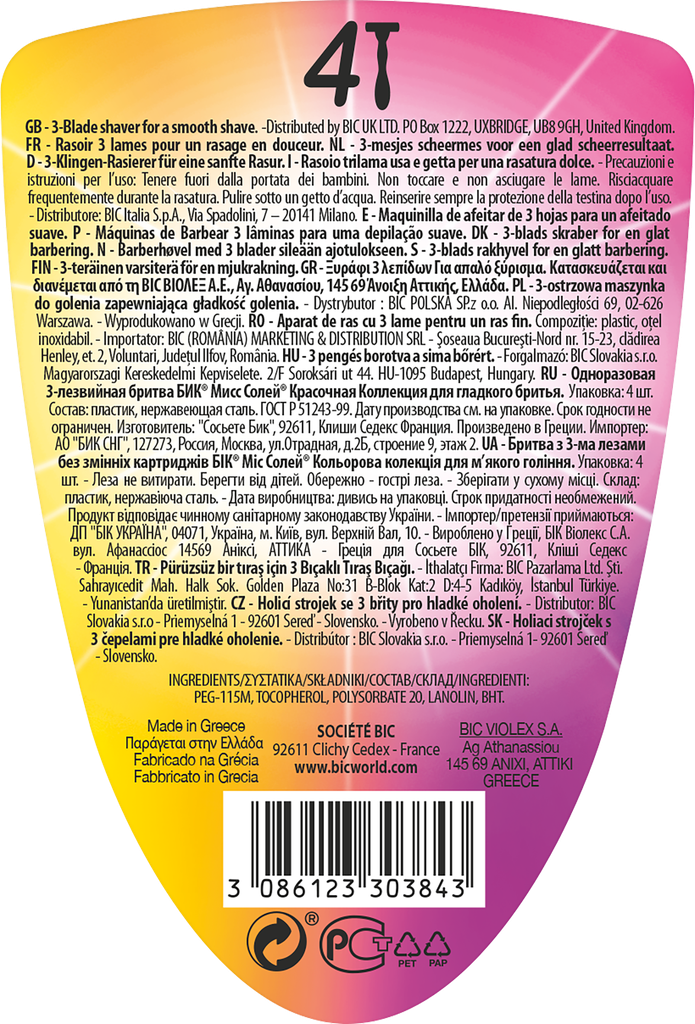 Станки для бритья BIC Мисс Солей Колор, 4шт информация: