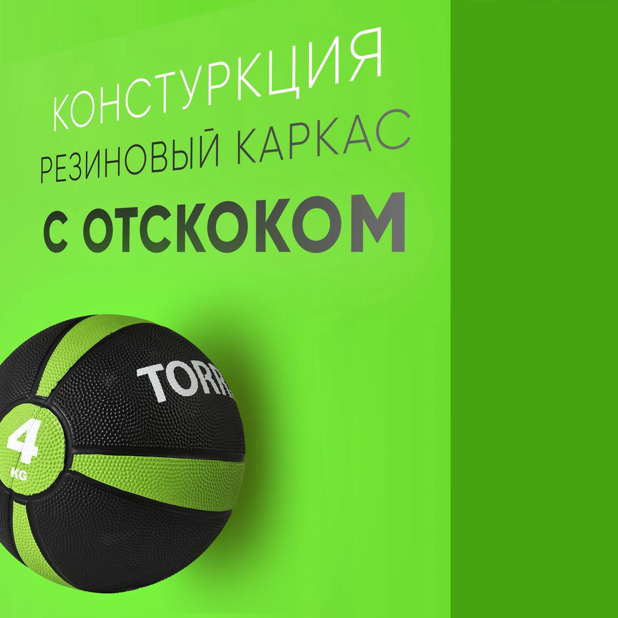 Медбол TORRES 4 кг, AL00224, резина, диаметр 21.9 см, черный-зеленый-белый 5 179 ₽