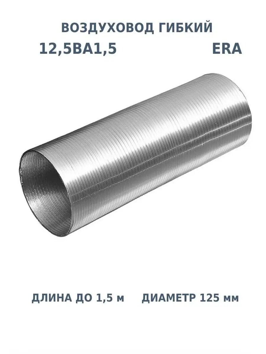 Воздуховод гибкий алюминиевый гофрированный ERA 12,5ВА1,5, D 125 мм, L до 1,5м информация: