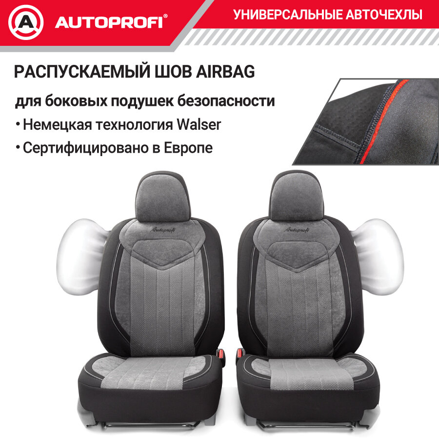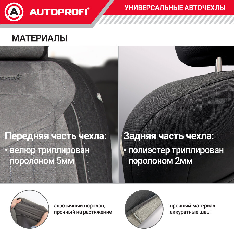 Авточехлы универсальные AUTOPROFI SGN-1505 BK/GY SIGNATURE, велюр, 5 мм поролон, 3D крой, 15 пред., черный/серый 6 762 ₽