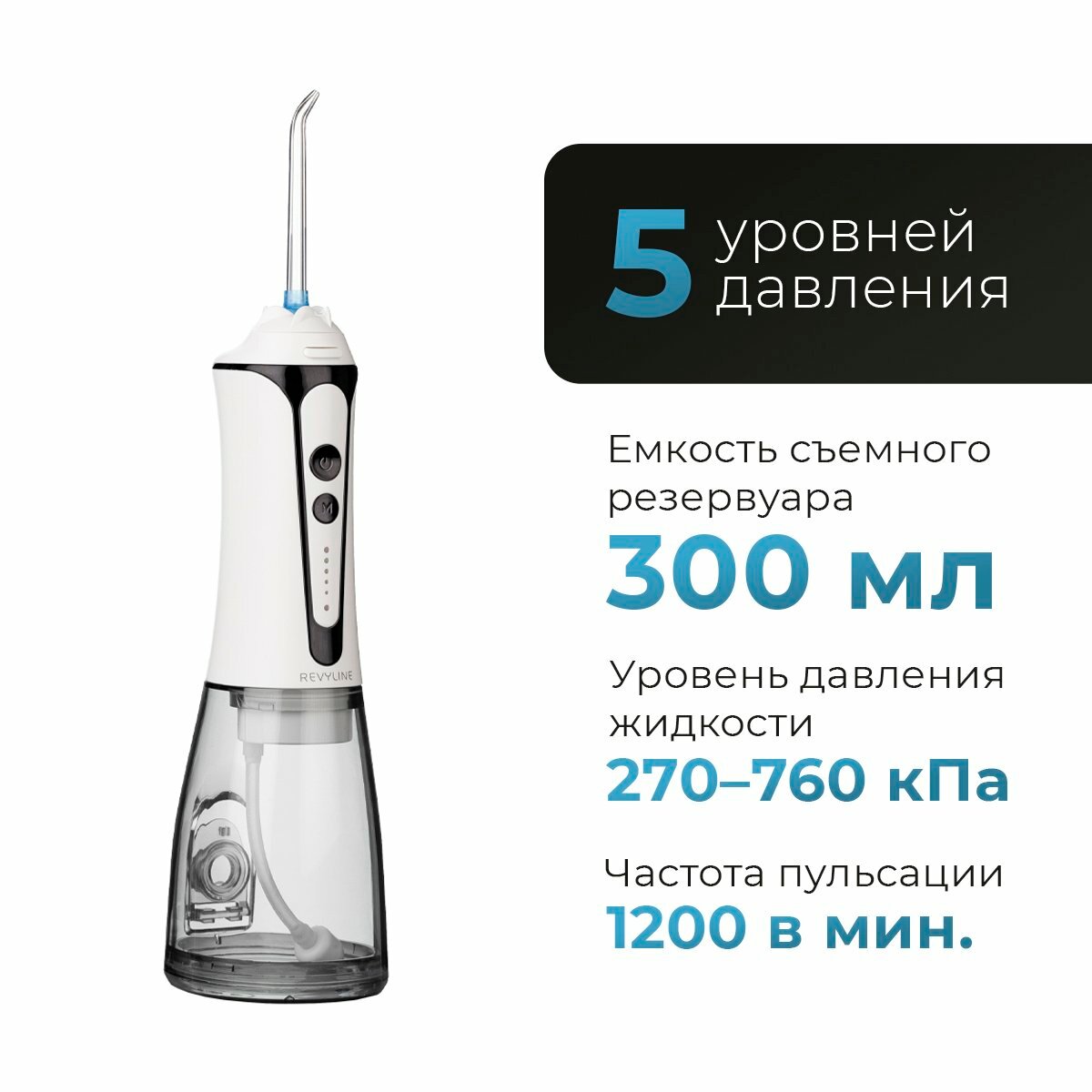 Ирригатор Revyline RL150, импульсный, 10 режимов, 600мл, питание от сети