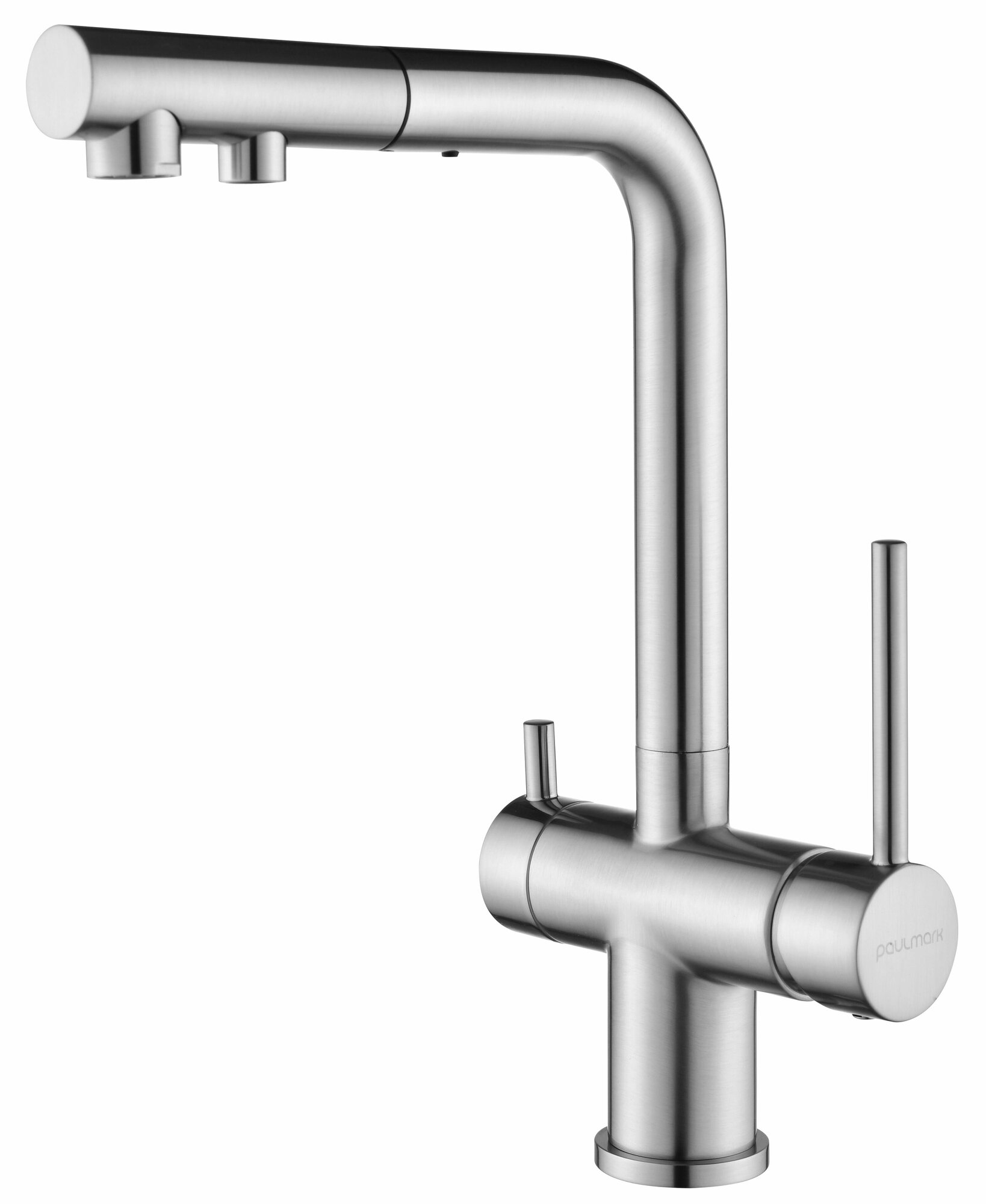 Отзывы на Кухонный смеситель с гибким выдвижным изливом Paulmark SERPENTINE, подключение к системе фильтрации воды по отдельному каналу, Г-образный, латунь, на мойку / столешницу, никель, Se213222-NI