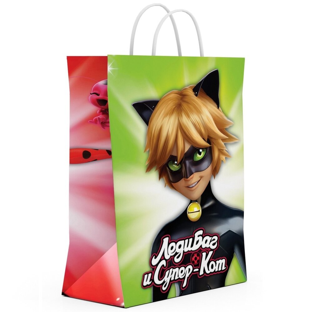 Подарочный пакет ND Play "Леди Баг и Супер-Кот", большой, красный с зеленым, 220х310х100 мм информация: