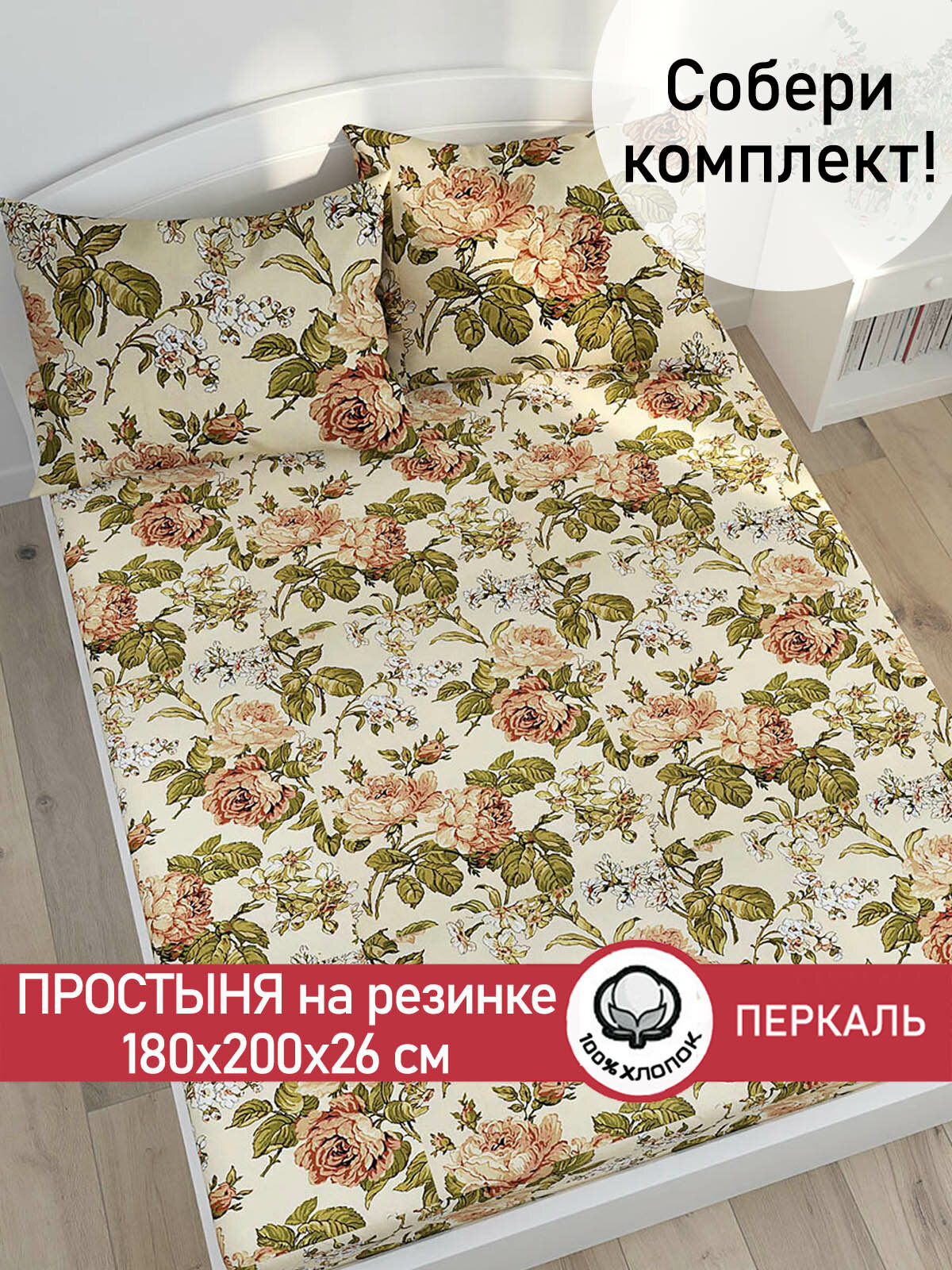 Простынь на резинке Сказка "Прохоровская роза" 180х200 см, ткань перкаль, 100% хлопок, высота 26 см информация: