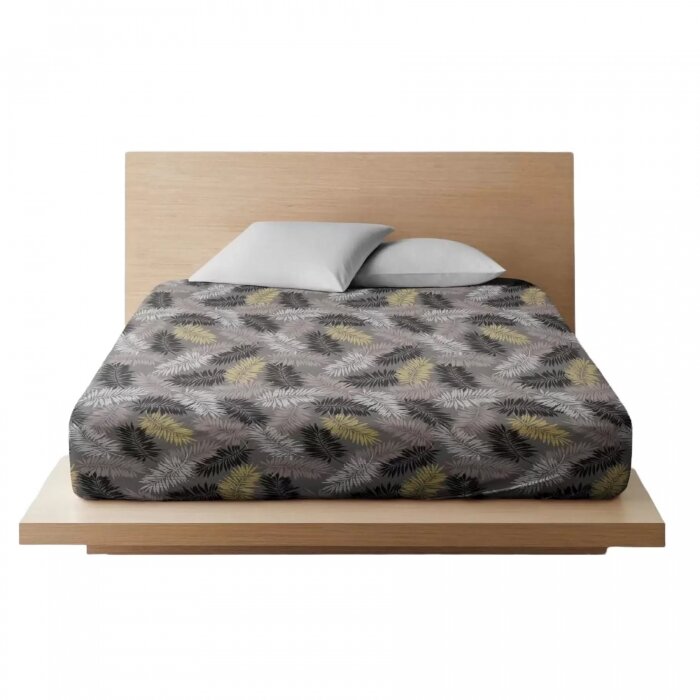 Простынь на резинке/180х200/бязь/натяжная/наматрасник/простыня/хлопок/Ночь Нежна/Тропики серый