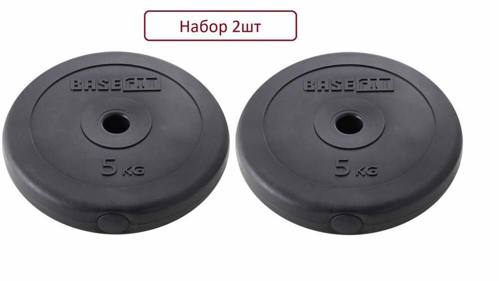 Диск пластиковый 5 кг 2шт, черный, d26 мм, BB-203 BASEFIT информация: