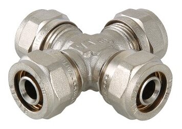 Отзывы на 5 шт - Крестовина обжимная 20 х 16 х 20 х 16 мм для металлопластиковых труб 16(2,0) и 20(2,0) VALTEC / Латунный фитинг под обжим для соединения трубопровода из металлопластика, VTm.341.N.201620