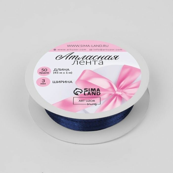 Лента атласная, 3 мм х 45 м, цвет кобальт информация: