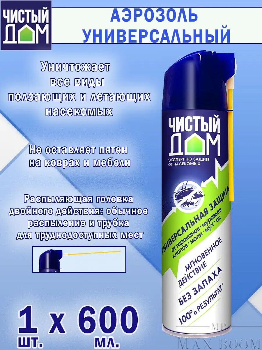 Чистый дом, универсальный аэрозоль от клопов, тараканов, блох, муравьев, мух, ос 600 мл