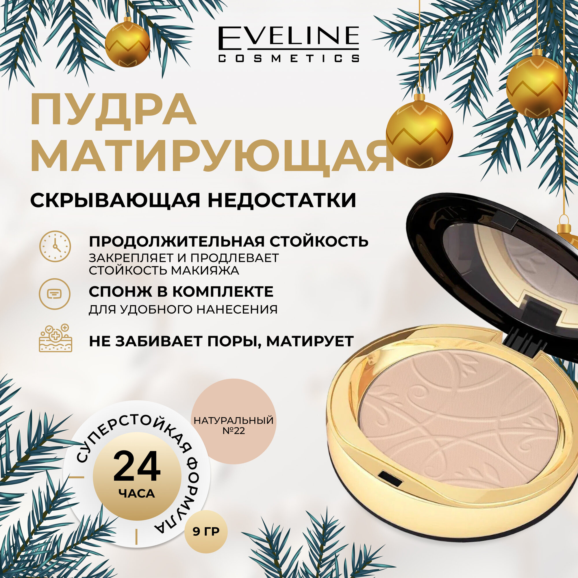 10 цен на Пудра для лица EVELINE CELEBRITIES BEAUTY минеральная матирующая с разглаживающим эффектом №22 NATURAL, 9 гр