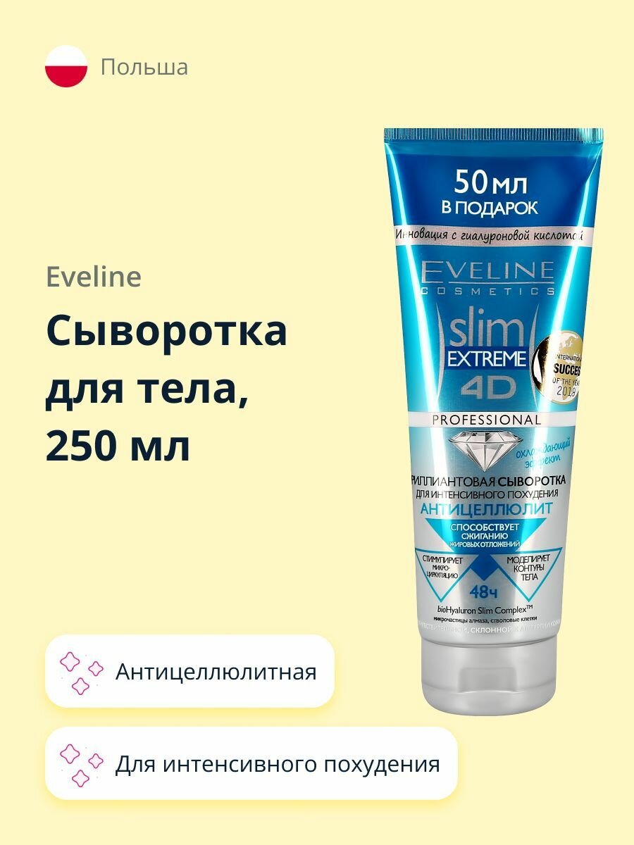 Сыворотка для тела Eveline "Slim Extreme", 4D, бриллиантовая, для интенсивного похудения, 250 мл