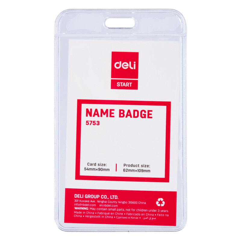 Бейдж Deli вертикальный 54х90 мм с зажимом 50 штук в упаковке размер вкладыша 90х54 мм, 1791590 информация: