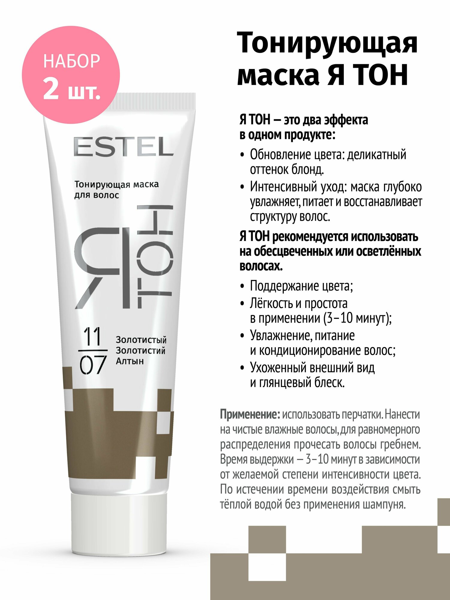 Estel Тонирующая маска для волос ятон, 11/07 Золотистый, (набор, 2шт.) информация: