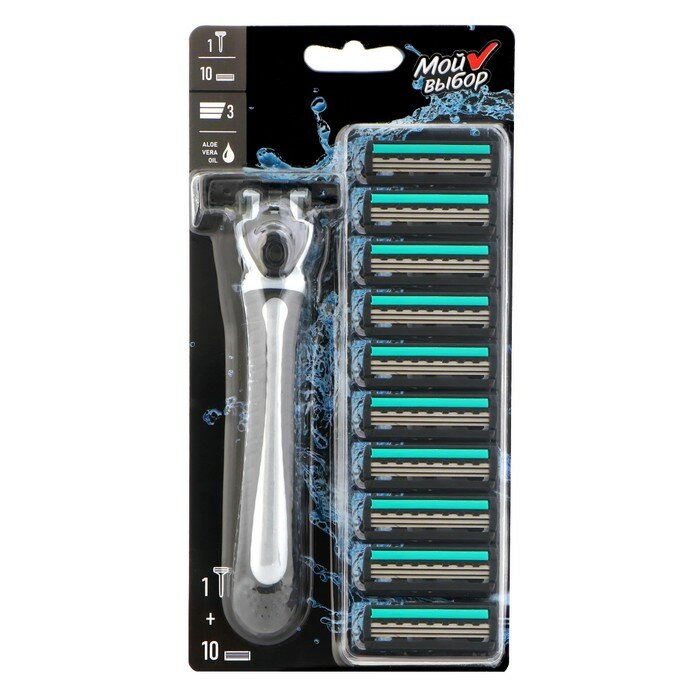 10 цен на Бритвенный станок + 10 сменных кассет с 3 лезвиями с увлажняющей полоской