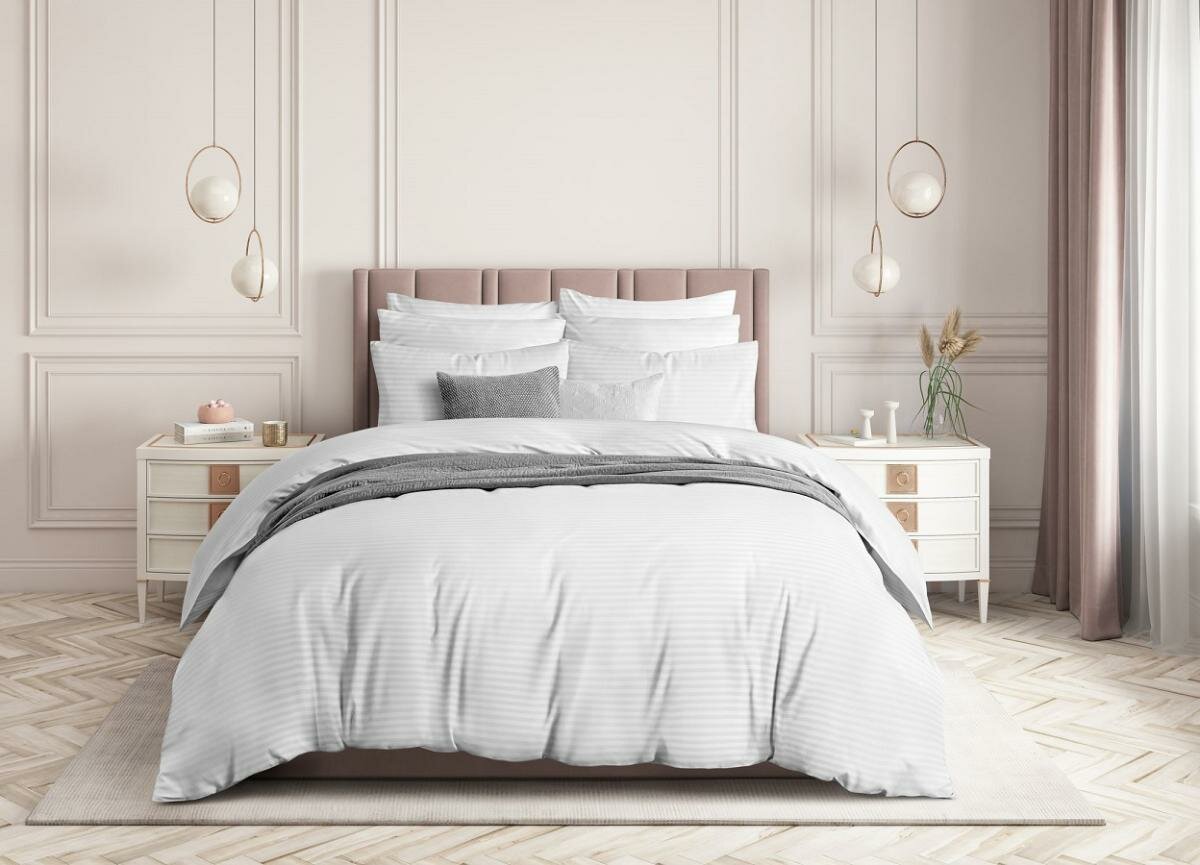 Постельное бельё/2 спальное/простынь 214x220/ наволочки 70x70/комплект/сатин-страйп/Guten Morgen