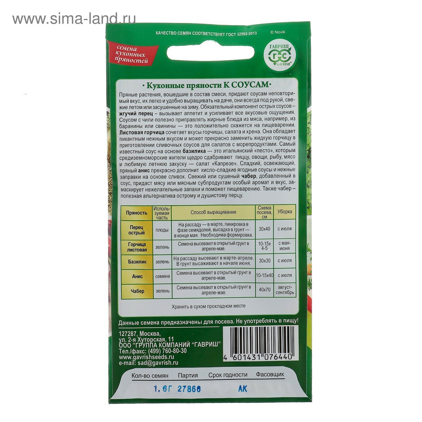 Семена Кухонные пряности к соусам, ц/п, 1,6 г информация: