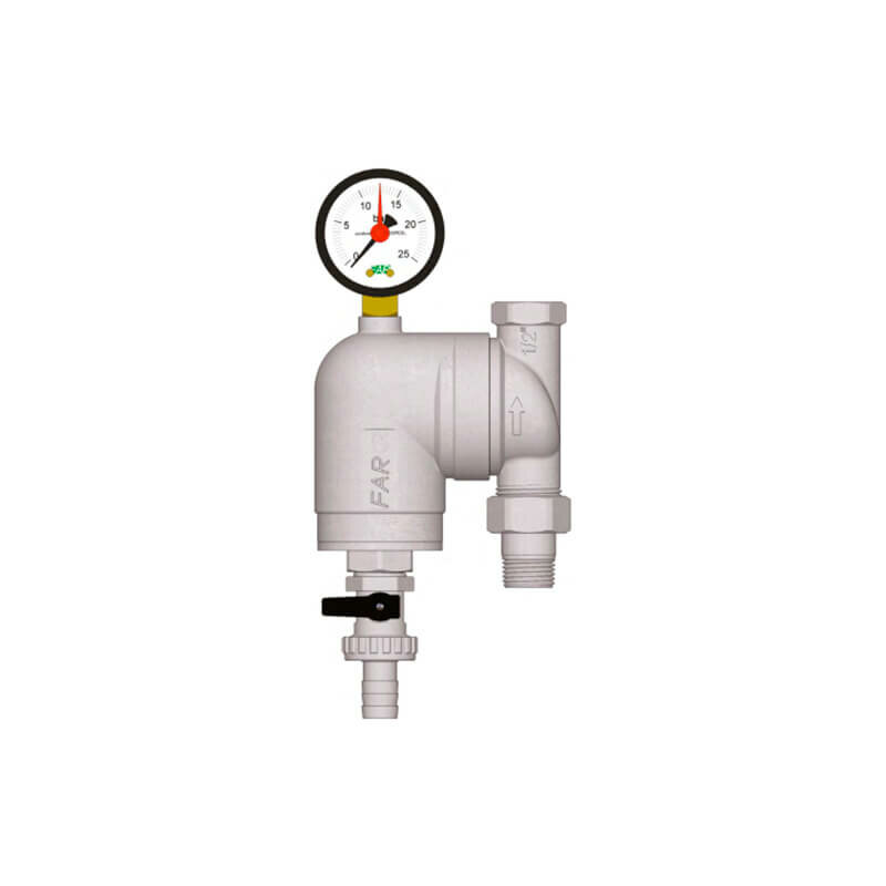Фильтр Far 300мкм, с манометром, Max: 95 °C, 25 бар. Поворотное соединение 1/2" ВР-НР информация: