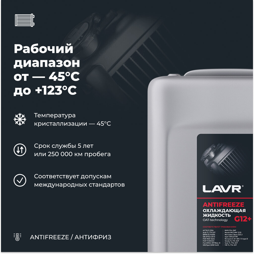 LAVR LN1711 Охлаждающая жидкость ANTIFREEZE -45 G12+, 10 л 1шт 3 010 ₽
