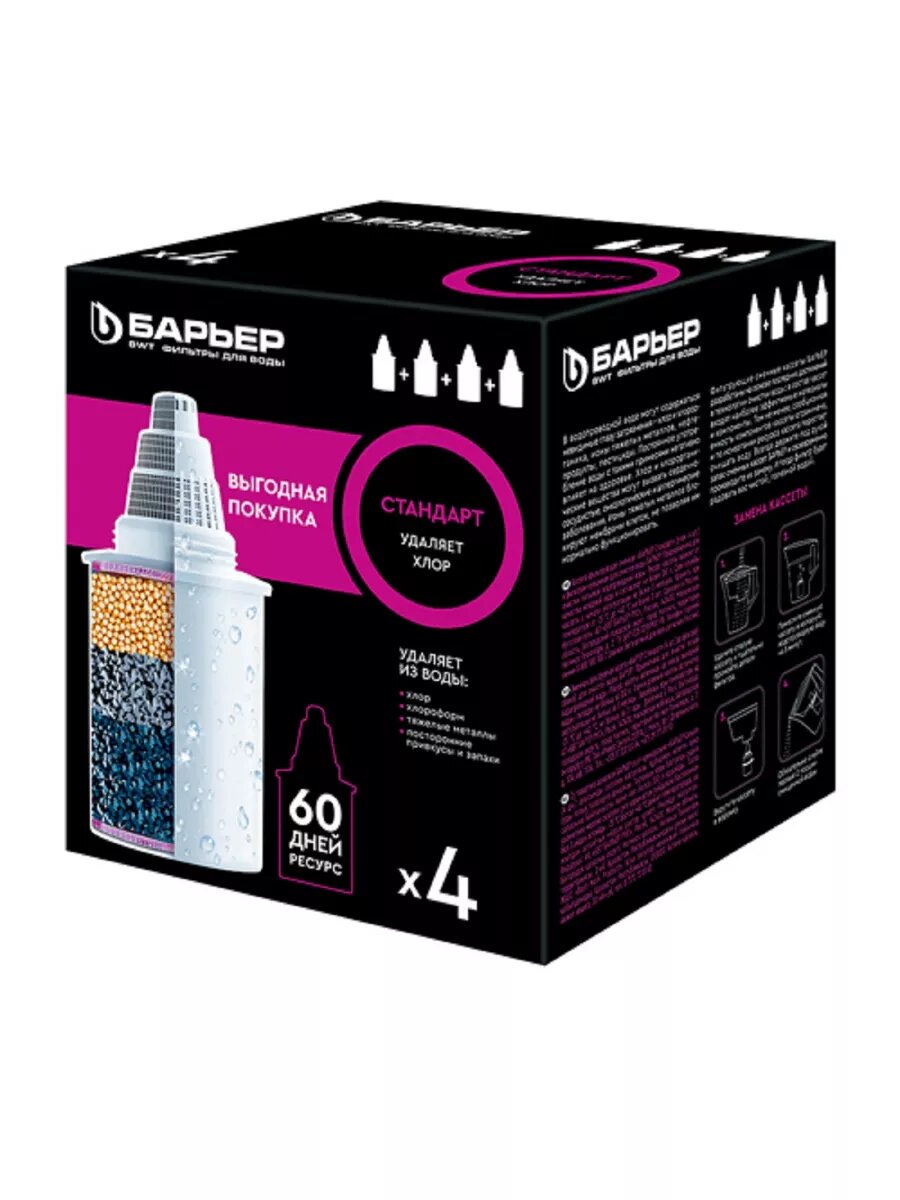 БАРЬЕР Классик, комплект кассет для фильтров-кувшинов, удаляет хлор, 4 шт, выгодное предложение (кубик)