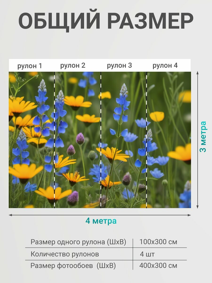 Фотообои моющиеся ударопрочные "Поле с дикими цветами" 400x300 см. флизелиновые на стену информация: