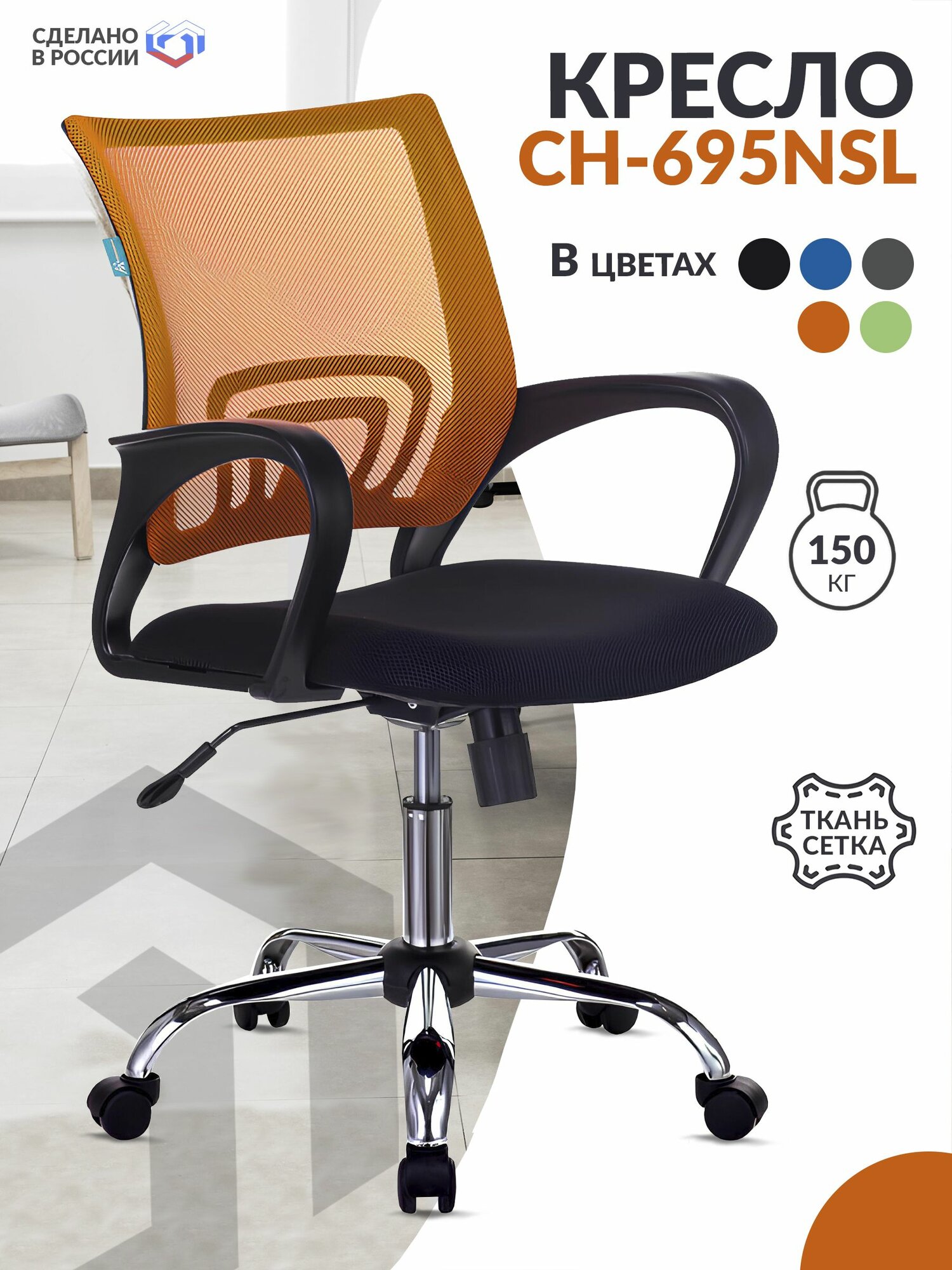 Кресло компьютерное CH-695NSL оранжевый, сетка, ткань / Кресло для оператора, школьника, ребенка, офисное