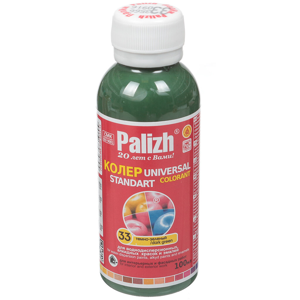 Паста колеровочная универсальная PALIZH, колер для краски, эмали, лака, темно-зеленый 100 мл информация: