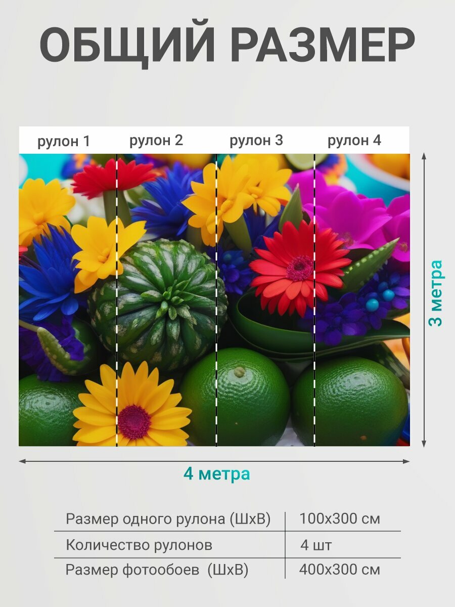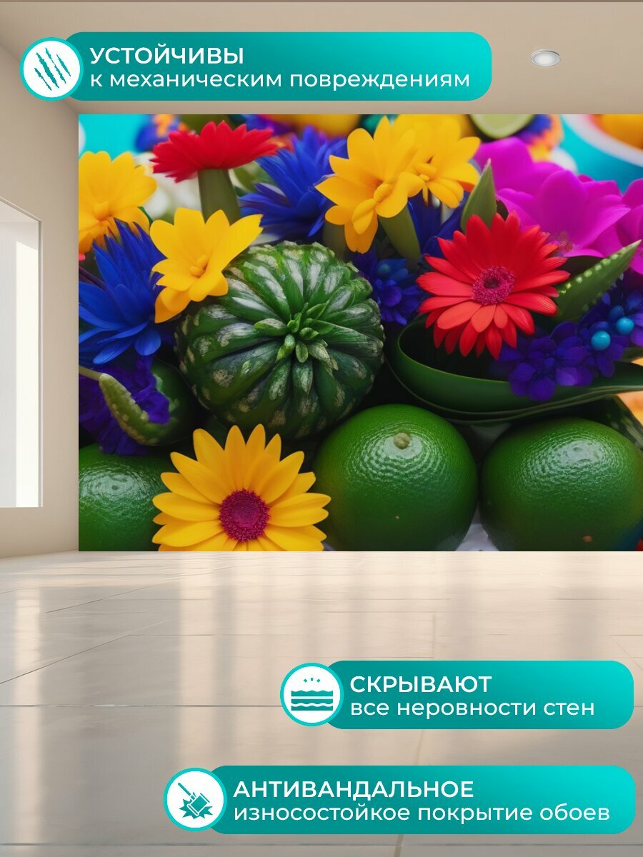 Фотообои моющиеся ударопрочные "Фрукты и цветы на мексиканском празднике" 400x300 см. флизелиновые на стену информация: