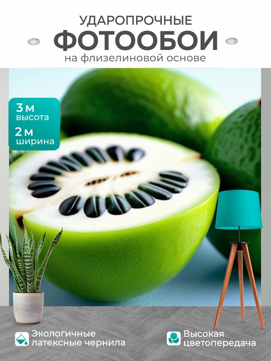 Фотообои моющиеся ударопрочные "Фейхоа и ее свойства для улучшения дыхательной системы" 300x300 см. флизелиновые на стену информация: