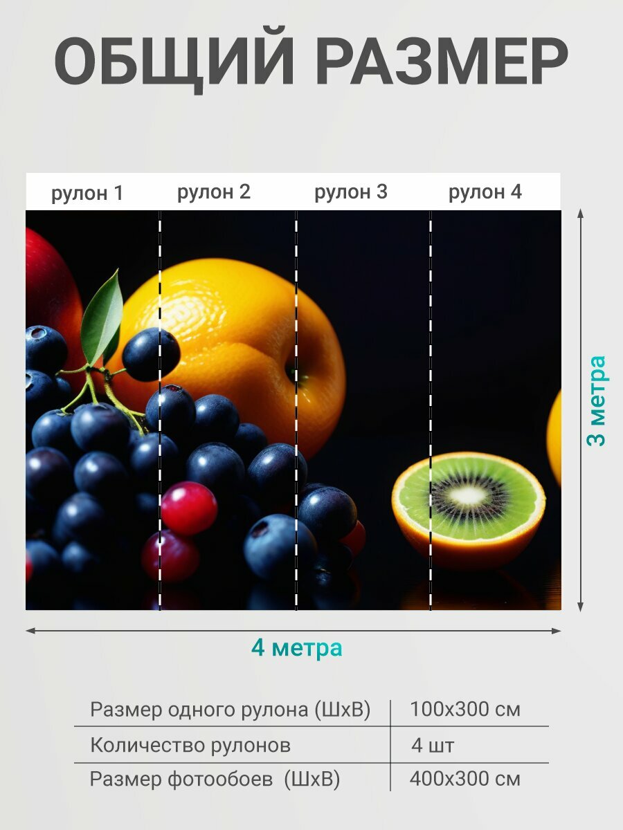 Фотообои моющиеся ударопрочные "Темный фон и светлые фрукты" 400x300 см. флизелиновые на стену информация: