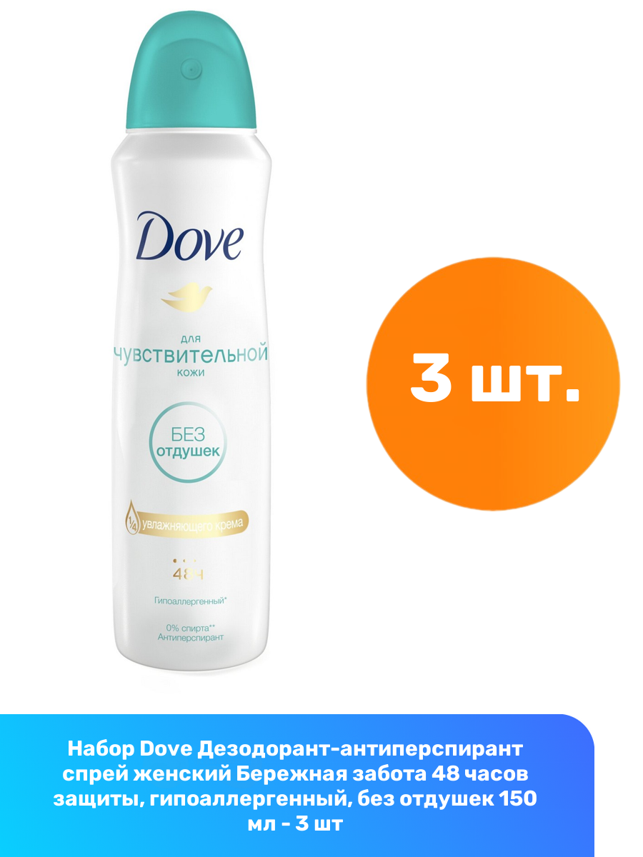 10 цен на Дезодорант спрей Dove Бережная забота для чувствительной кожи 150 мл x 3 шт