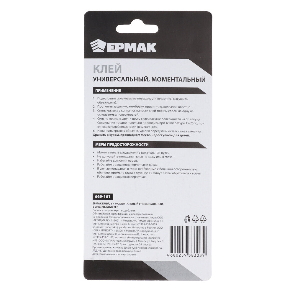 Ермак Клей 3г моментальный универсальный, в инд.уп, блистер, 24 штуки информация: